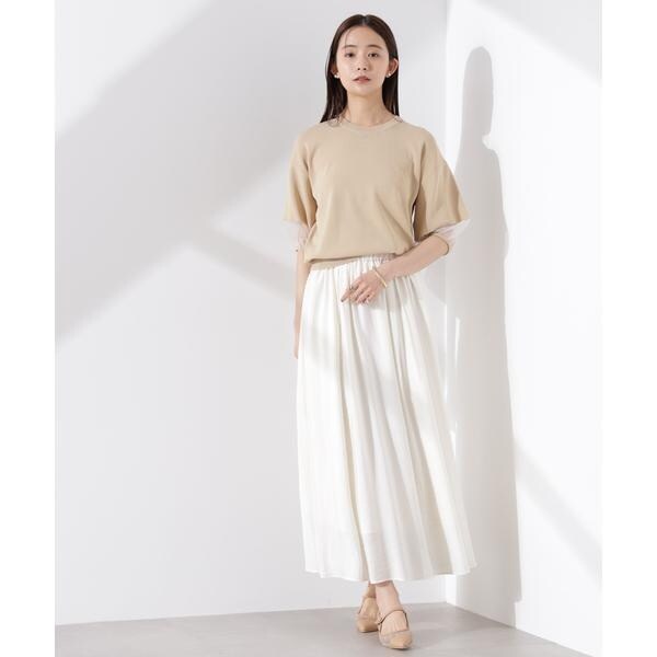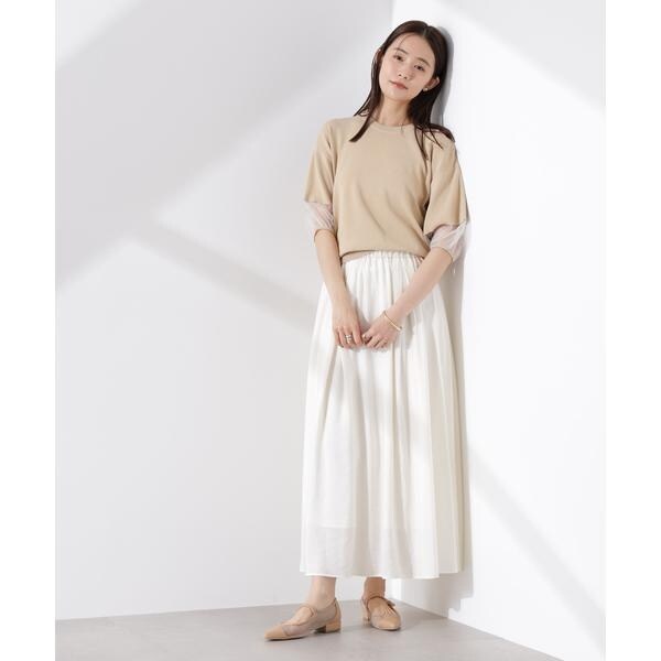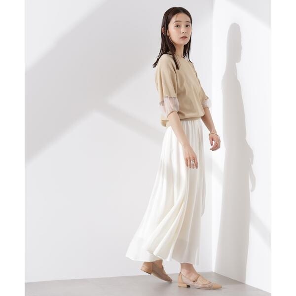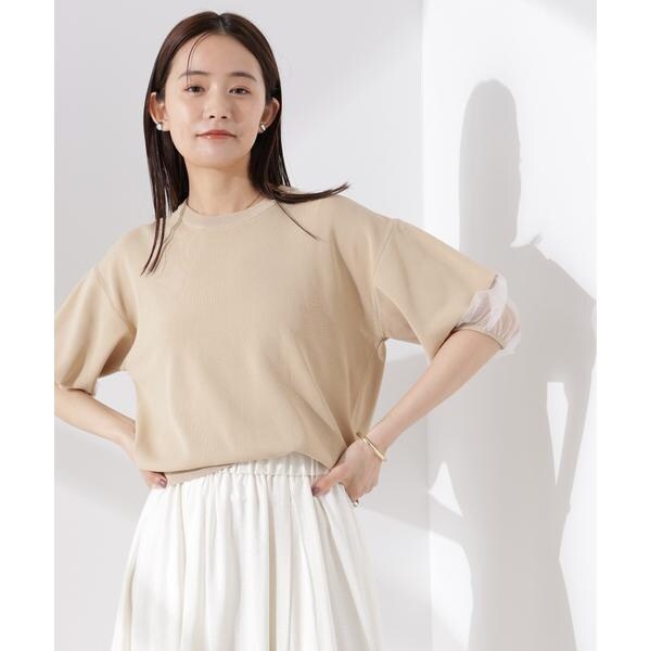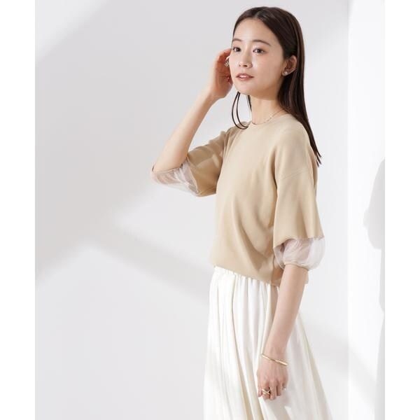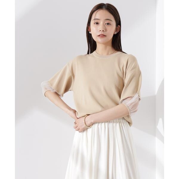 ・袖口のシアー切り替えが引き立つベージュ