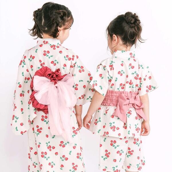 ホワイト系(ヨーヨー)とピンク系(イチゴ)はそれぞれ、お揃いの浴衣や甚平も展開しているのできょうだい・お友達とのおソロコーデもおすすめです。