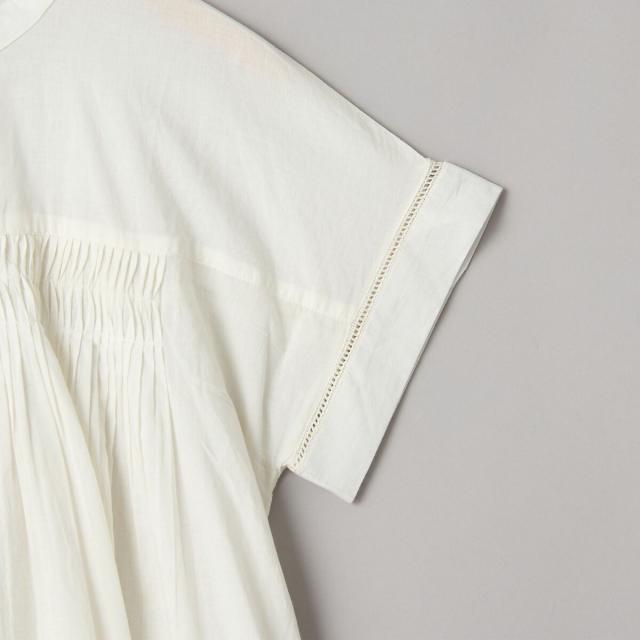 胸元にタックをデザインしているのが大人らしさを高めるポイント。