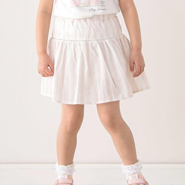 【お揃い】はしごレースマルチストライプスカパン(90~130cm)