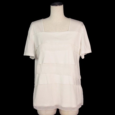 【中古】ニューヨーカー NEWYORKER Tシャツ カットソー スクエアネック ティアード フリル 半袖 ホワイト レディース