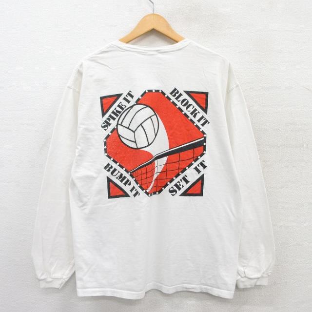 古着 ジャージーズ 長袖 ビンテージ Tシャツ メンズ 00年代 00s バレーボール コットン クルーネック 白 ホワイト XLサイズ 中 中古 古着