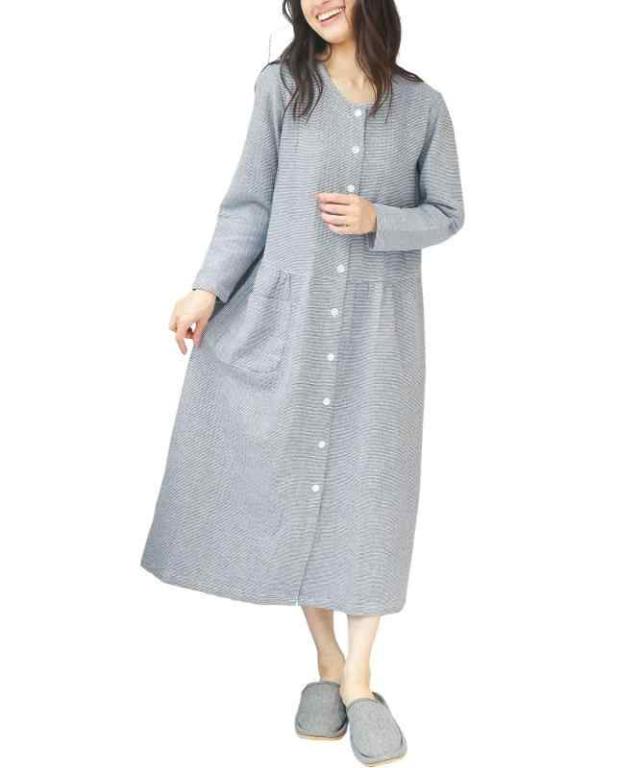 【前開きボタン】入院時にも便利な前開き仕様。締め付け感がないので、妊婦さんにもオススメ前開きなので授乳にも 【右サイドポケット】右サイドにスマホも入る便利なポケット付き。 【ロング丈】ボディーラインが出にくい、ゆったりロング丈で体型カバー効果ウエスト切替でギャザーを寄せて、ふんわり可愛いシルエットに。
