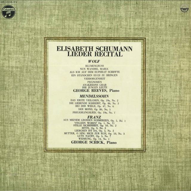 【中古】LP エリザベート シューマン(ソプラ エリザベート シューマン/ドイツ リート リサイタル HR1008EV COLUMBIA /00260