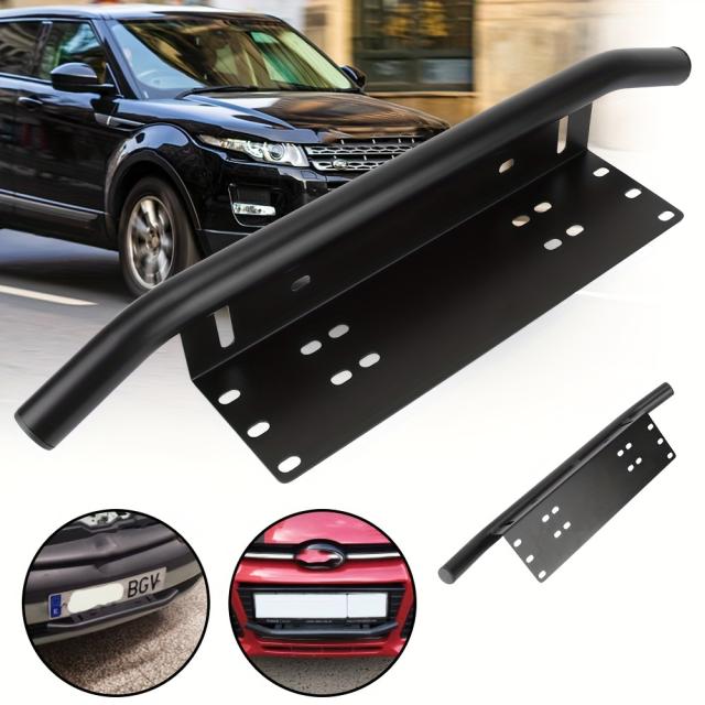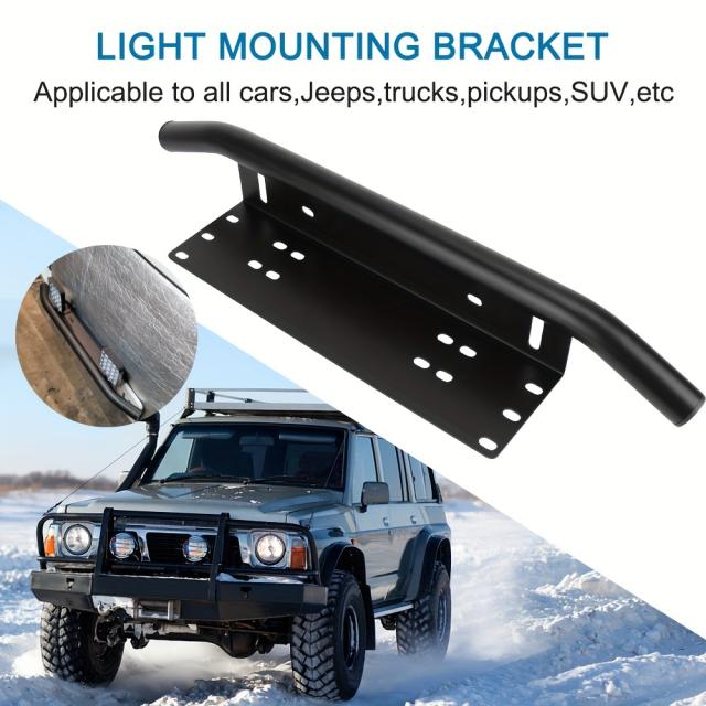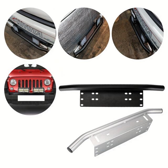 Heavy-duty bracket: high-quality aluminum alloy material and Advanced production process, the mounting bracket is impact resistant and anti-corrosion Mounting position: 4 different locations/methods to install the off-road lights. On the bull bar, 2 Sets of mounting holes on top and 1 set in front Easy installation: no drill, no modification requiredSpecification: Color: Silver/Black Metal Material: Aluminum Alloy Placement on Vehicle: Left, Right, Front, Rear Fitment: Universal Car, Offroad, Truck, Pickup, SUV, 4x4, etc. Work with most off road auxiliary lights, fog lights, driving lights, LED work Lamp and LED light bars Package Included: 1 X Car license plate frame (without light)