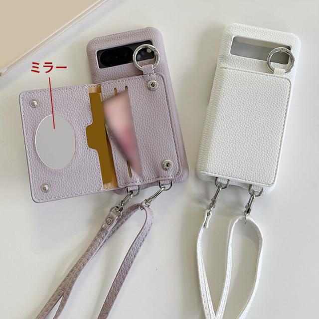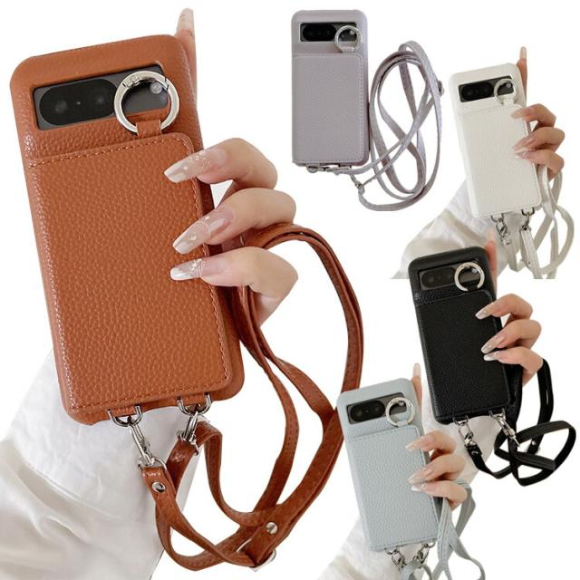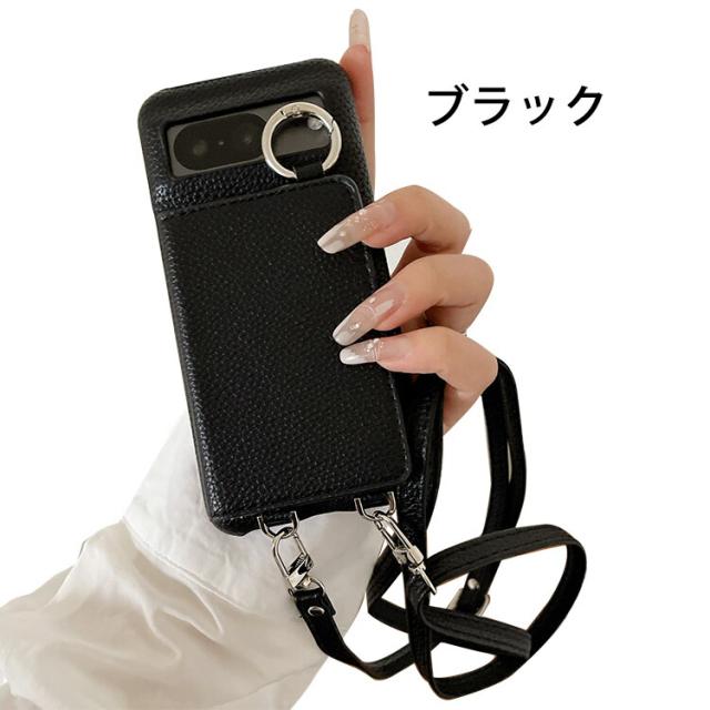 Pixel9a ケース カバー PUレザー 背面PUレザーケース 角 保護 一体型リング付き ミラー付き ショルダーストラップ 肩掛けベルト付き 長さ調節可能 Google グーグル ピクセル9a アンドロイド おすすめ おしゃれ