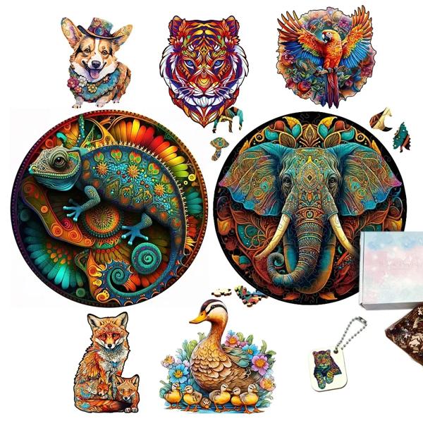 大人と子供のためのカメレオン木製動物ジグソーパズル、インタラクティブゲーム、3D教育玩具、象の誕生日プレゼント