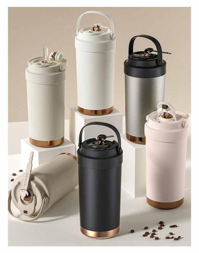 | セラミック・タンブラー 500ML 保温・保冷 「セラミックコーティング」加工をすることで、ステンレス特有の金属臭をカットし、コーヒーやお茶の風味がそのまま味わえます。 ストロー口・直飲み口・フタなしの3WAY切り替えでシーンに合わせて活用。 漏れにくく、安心して持ち運べる密封設計。しっかり密閉されるフタで、バッグの中でも液漏れの心配なし。 シリコン素材の持ち手がついていて、快適で便利。 オフィス、自宅、学校、居酒屋などの所で手軽にコーヒーや紅茶などホットあるいはアイスの飲み物を楽しみましょう。 | |