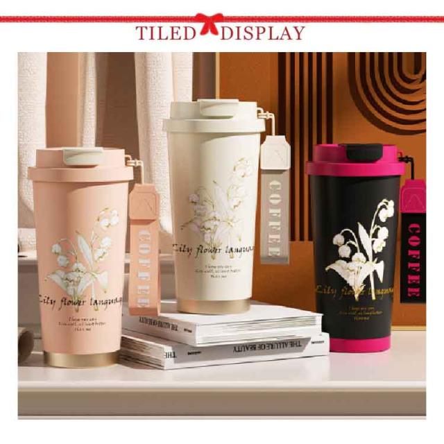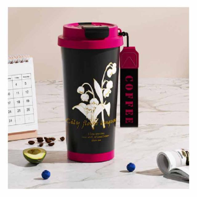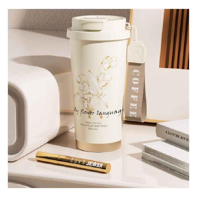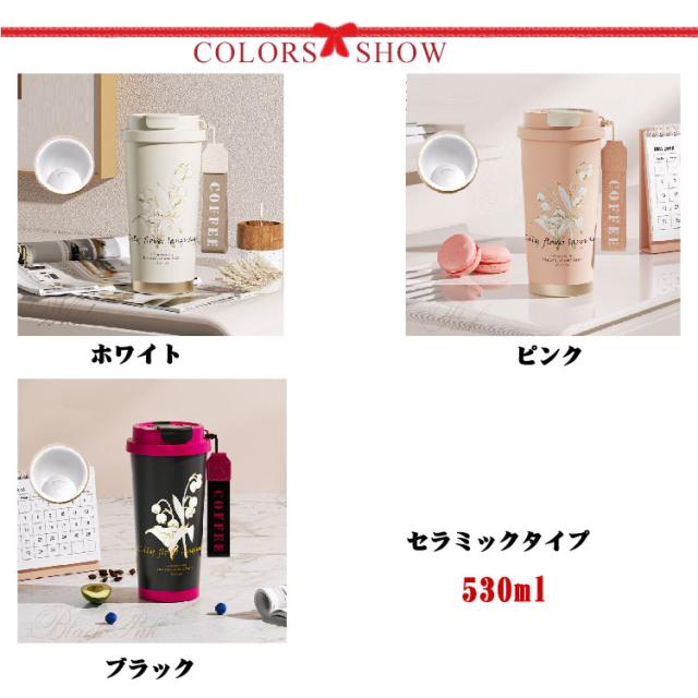タンブラー セラミックタンブラー 530ml ストロー付きタンブラー 2way 保温 携帯コーヒータンブラー 水筒 直飲み 蓋付き 真空断熱 保冷 マグボトル こぼれない 真空二重 魔法瓶 鈴蘭柄 ステンレス 金属臭しない 軽量 持ち運び 送料無料
