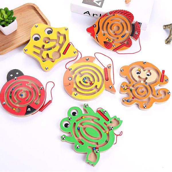 子供のためのミニ木製のインタラクティブな魅力的な赤ちゃんのおもちゃ 魅力的なビーズを備えた磁気パズル 楽しい 赤ちゃんのための理想的な贈り物