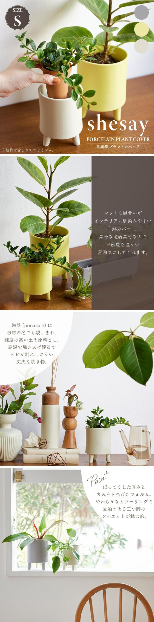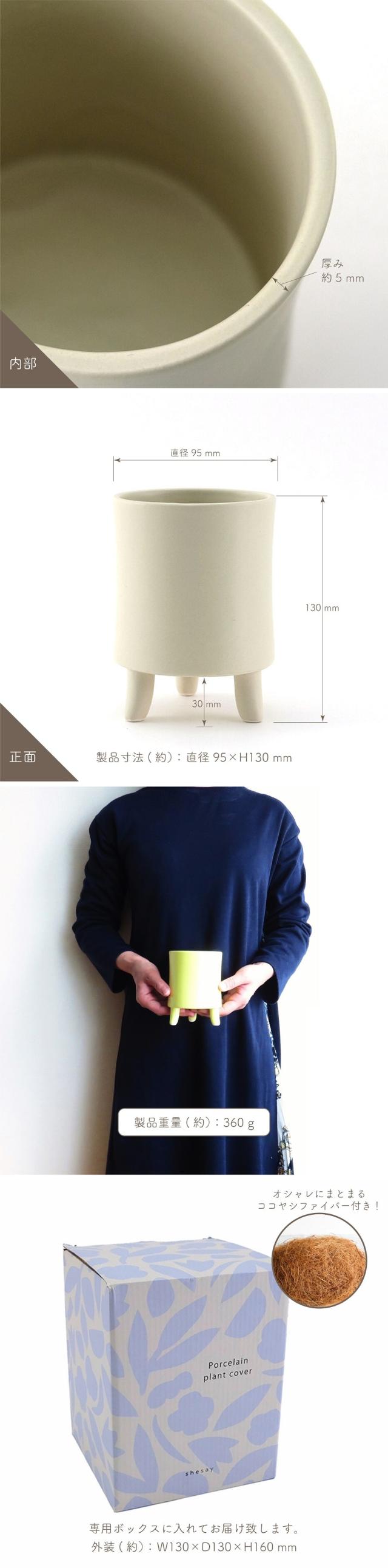 鉢カバー プランターカバー shesay シセイ 磁器製プラントカバー S ココヤシファイバー付き 2.5号鉢相当 円形 三つ脚 パステルカラー ガーデン ガーデニング インテリアグリーン 鉢植え インテリア