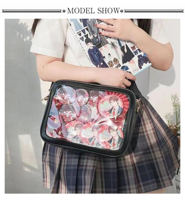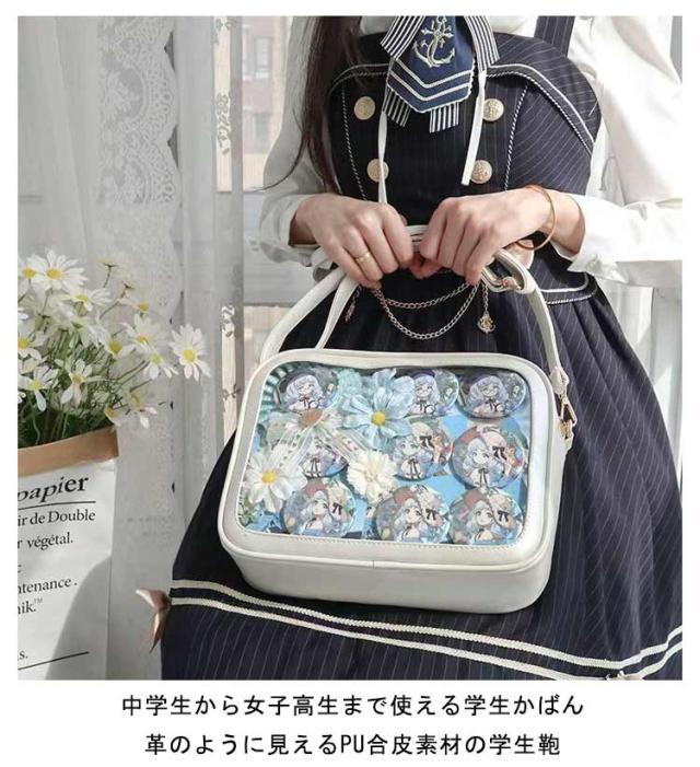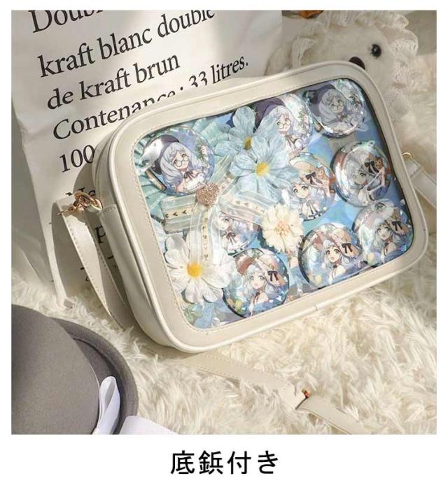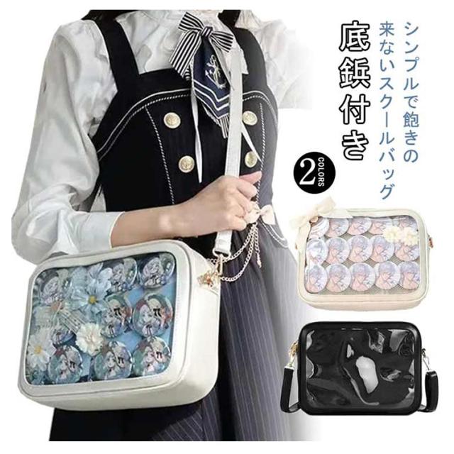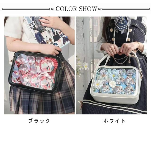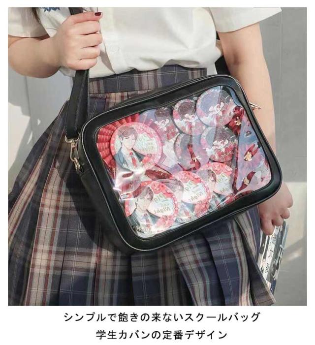 痛バッグ ショルダーバッグ ビニールバッグ レディース ショルダースクールバッグ高校生 ガールズ 鞄 カバン かばん ハンドバッグ ビニールバッグ トートバッグ 缶バッジ クリア 見せバッグ 可愛 かわいい カジュアル 送料無料