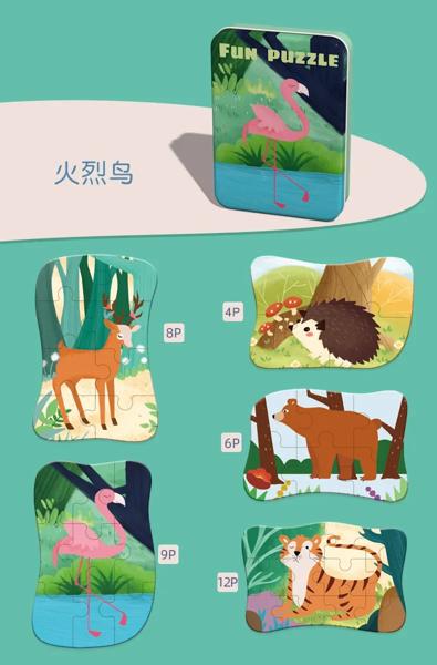 木製ジグソーパズルのおもちゃ金属ボックス5イン1高度なのジグソーパズル3-7歳