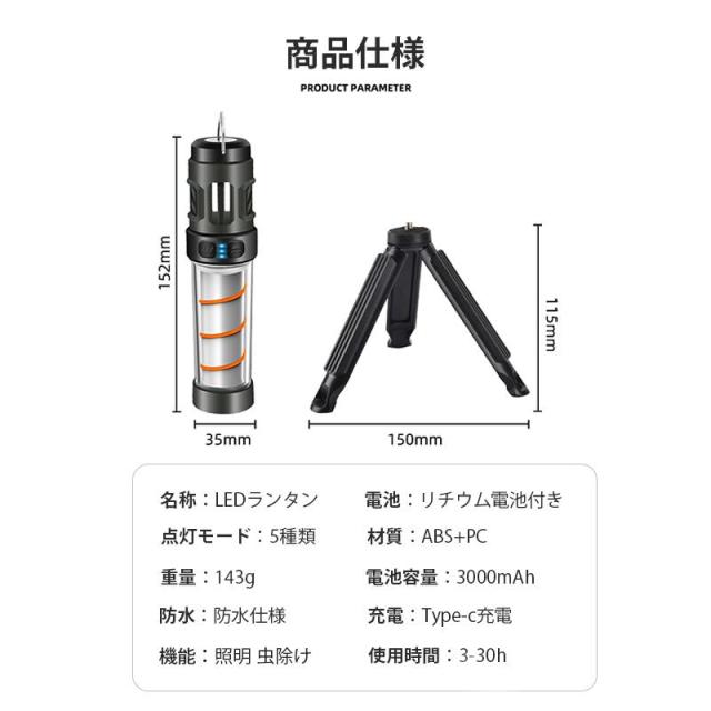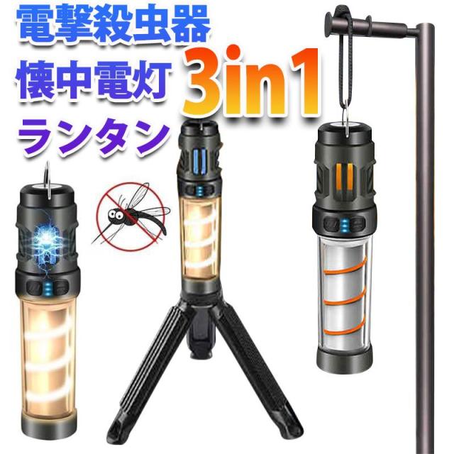 電撃殺虫器 ledランタン 懐中電灯 usb充電式 室内&室外 蚊取り 虫除け 三脚スタンド付き 軽量 5の点灯モード 携帯 高輝度 防水 キャンプライト アウトドア