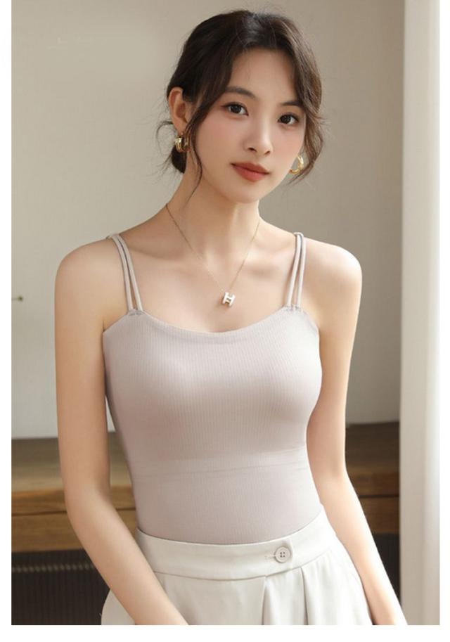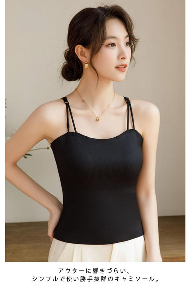 ショート丈 細ストラップ レディース キャミソール タンクトップ カップ付きキャミソール インナー キャミ ストラップ カップ付き 下着 無地 ナローストラップ シンプル かわいい パッド入り インナー キャミ
