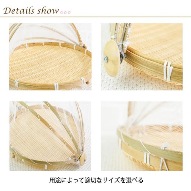 | 竹ざる ネット付き。虫を寄せ付けません 用途によって適切なサイズを選べる 風通しがいい。干し野菜を作るのにぴったり | |