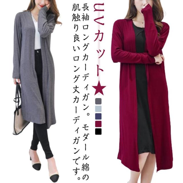 | UVカット★長袖ロングカーディガン。モダール綿の肌触り良いロング丈カーディガンです。 夏は冷房、日焼け対策に、春秋の涼しい季節にはメインのアウターとして、幅広いシーズンで活躍出来ます。 これからの季節に欠かせないUV対策に! さらっと羽織れるデザイン!シンプルで軽くて着まわしやすい! | |