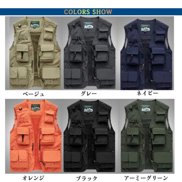 メンズ 仕事 ベスト アウトドア 農業 アウトドアベスト レディース メッシュベスト お釣り ベスト 通気 軽量 アウトドア ポケット付 ベスト ウォーキング 登山 カメラマン 撮影用