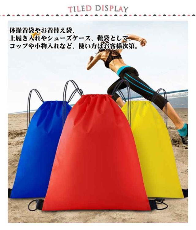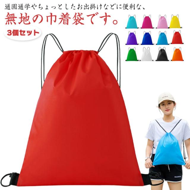 | 通園通学やちょっとしたお出掛けなどに便利な、無地の巾着袋です。 体操着袋やお着替え袋、上履き入れやシューズケース、靴袋として、コップや小物入れなど、使い方はお客様次第。 | |