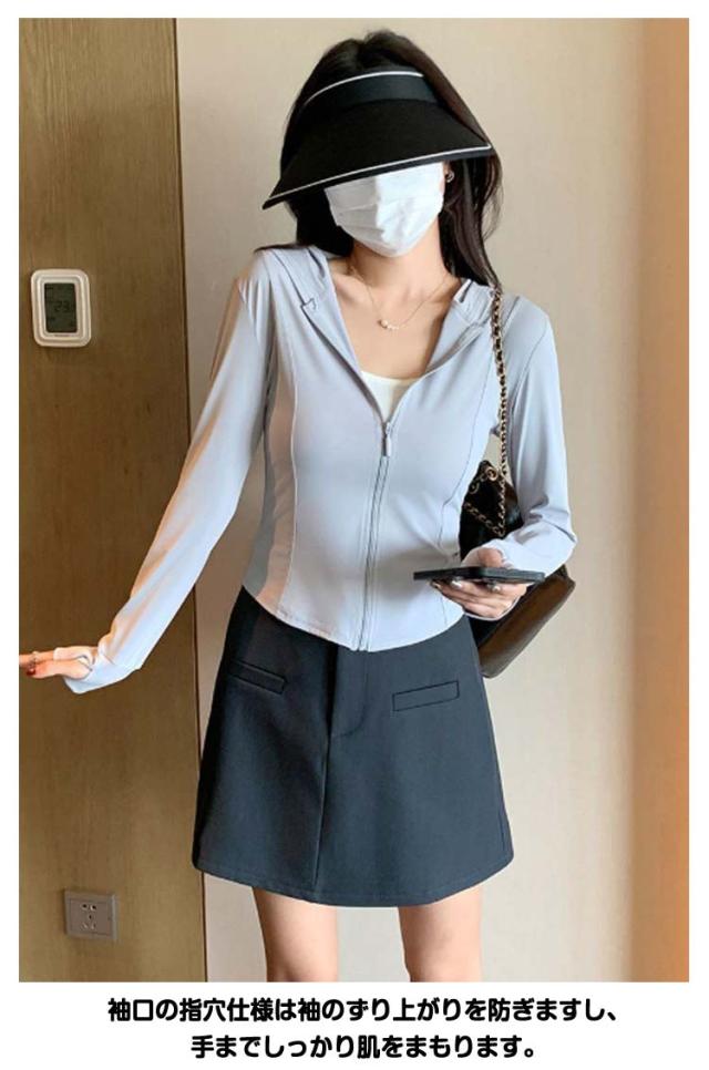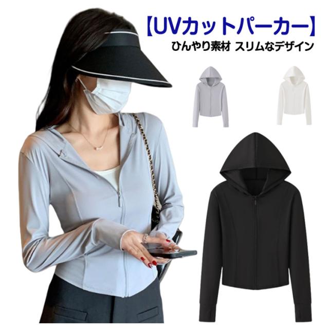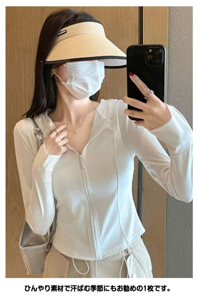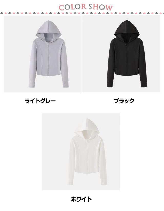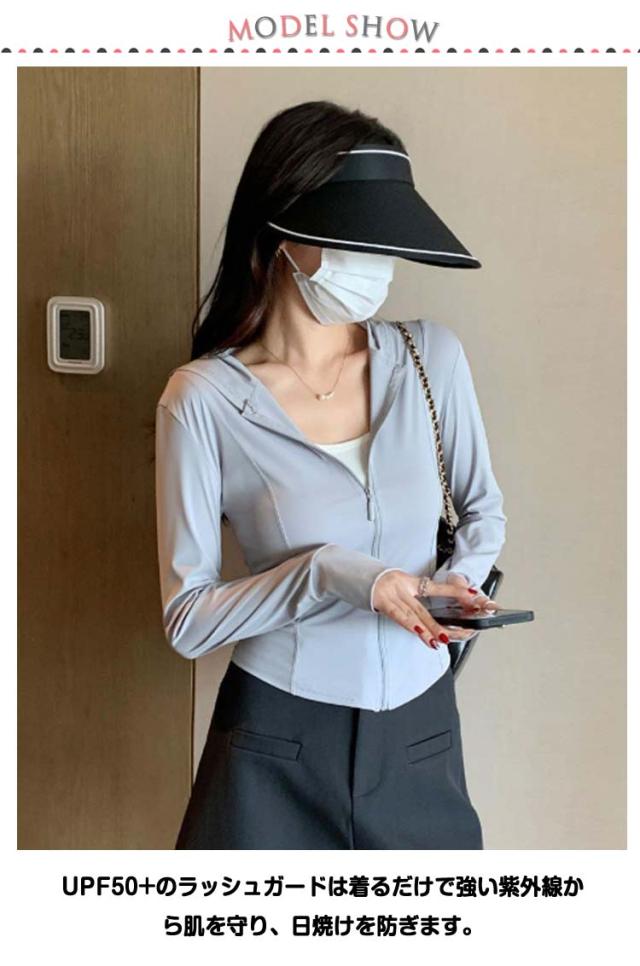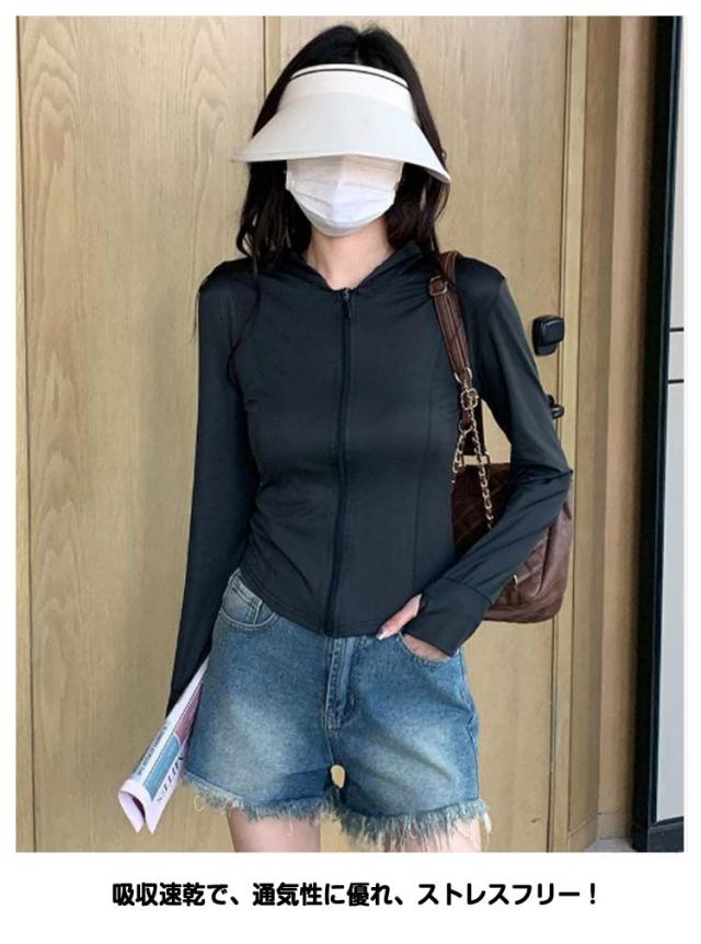 着痩せ ひんやり フルジップ 夏 ラッシュガード レディース 冷感 タイト UVパーカー 着痩せ パーカー 長袖 フード付き 前開き 速乾 カーディガン スリム 薄手 アウター トップス スポーツ フィットネス ゴルフ