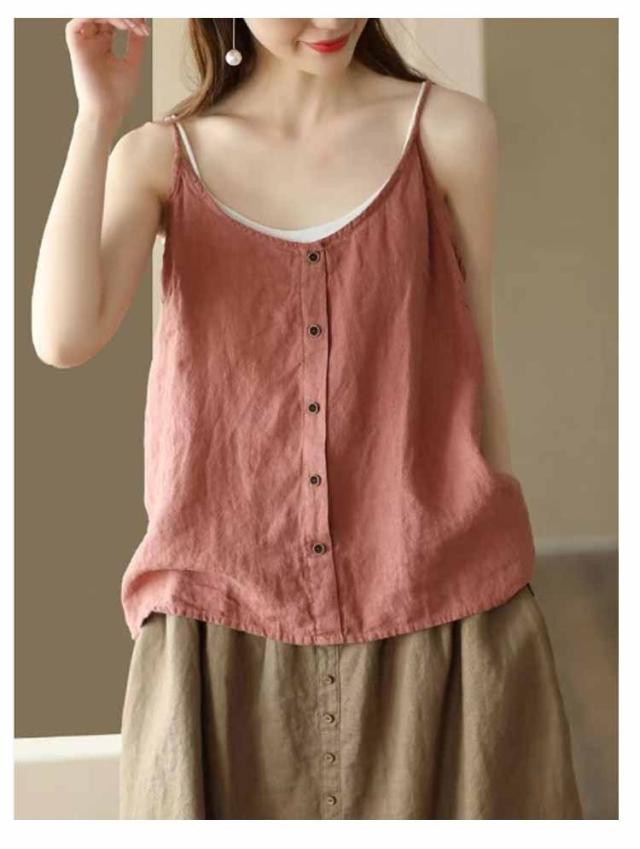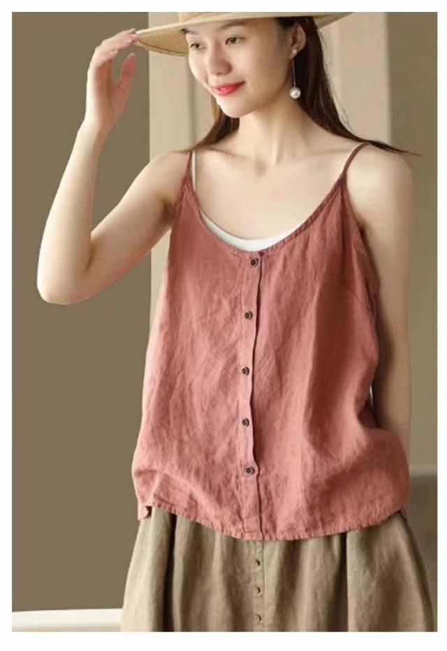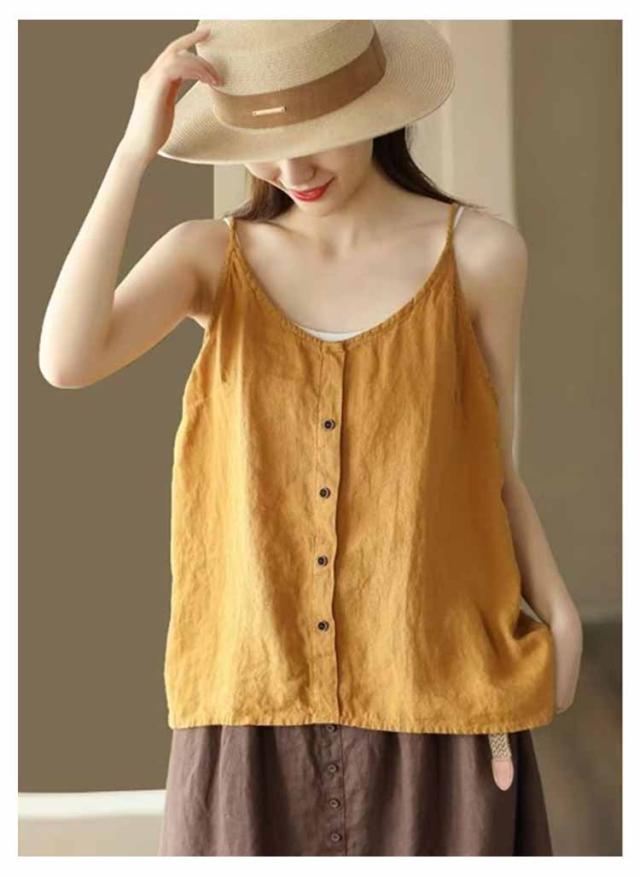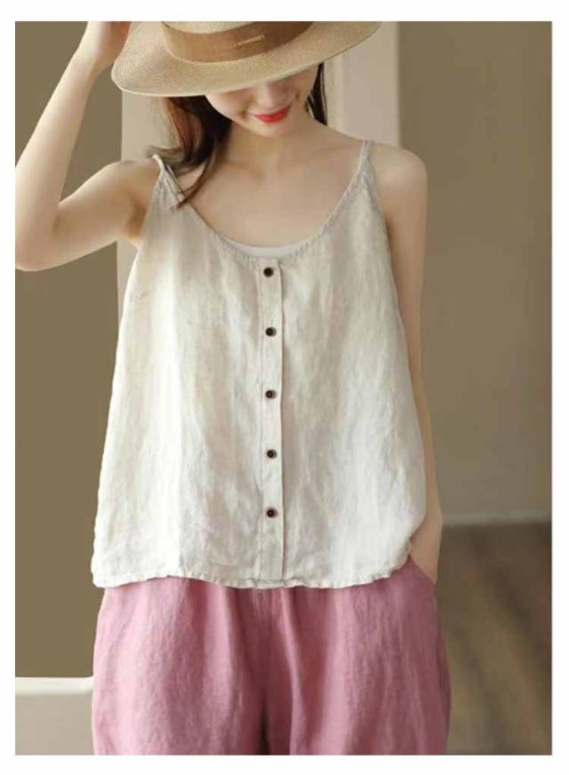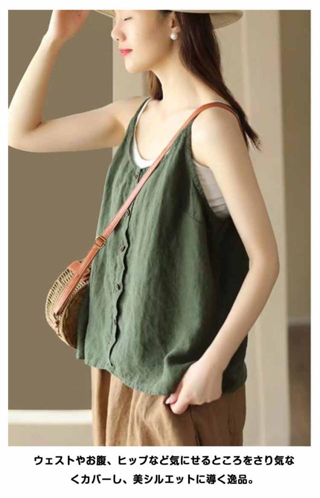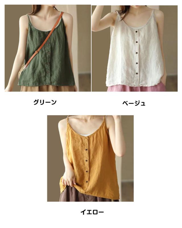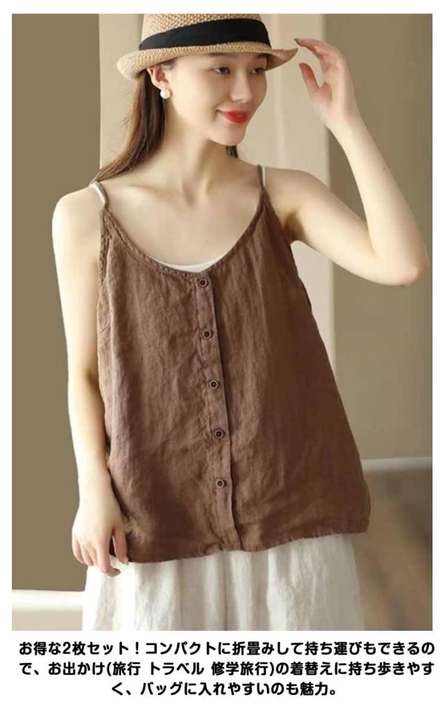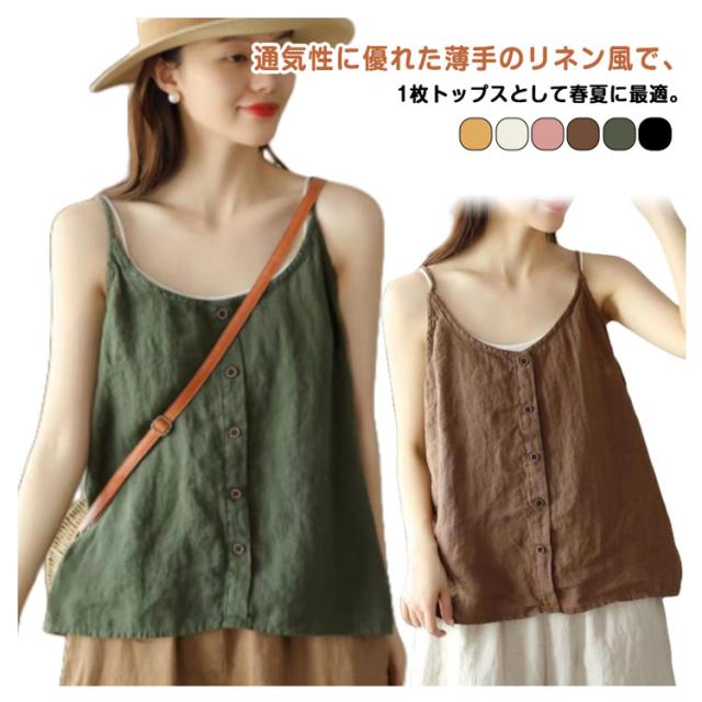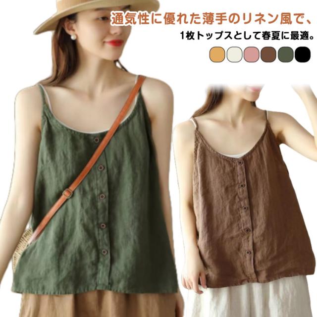 リラックス レディース インナー 綿麻風 ブラウス キャミソール 綿麻風 吸湿 リネン タンクトップ レイヤード 爽やか リラックス さらさら ナチュラル きれいめ キャミソール 涼しい 通気性 快適 トップス ゆったり 体型カバー