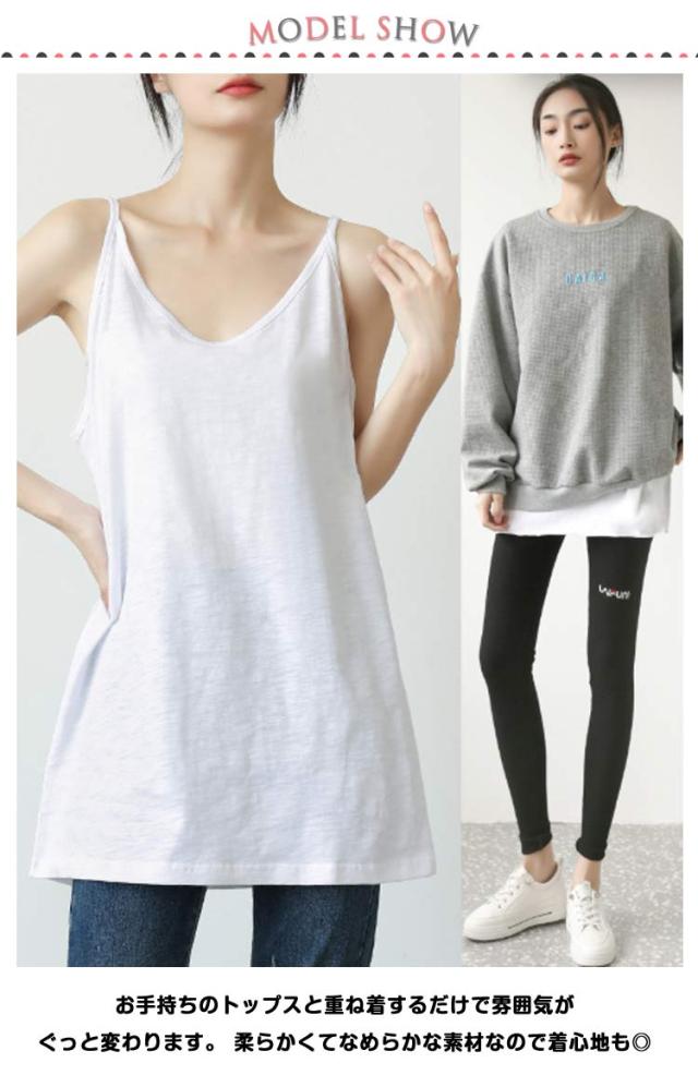 レディース タンクトップ 重ね着 Tシャツ キャミソール トップス ゆったり チュニック レイヤード ロング丈 ノースリーブ お腹カバー 体型カバー お尻カバー キャミソール ロング丈 シンプル おしゃれ ナチュラ 母の日
