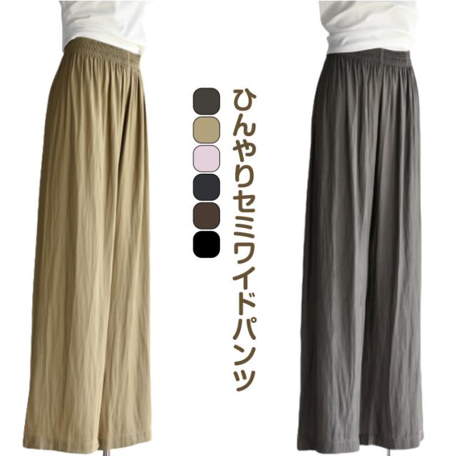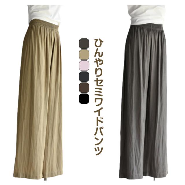 涼しい 接触冷感 ウェストゴム レディース 冷感パンツ ロング丈 透けない イージーパンツ おしゃれ ひんやり 体型カバー カジュアル