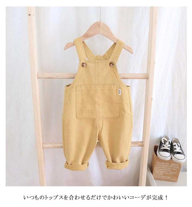女の子 オールインワン ボトムス オーバーオール 通園 ロングパンツ ベビー服 長ズボン 子供服 男の子 通学 80cm ポケット付き シンプル 無地 ゆったり キッズ サロペット 90cm 100cm 110cm 120cm