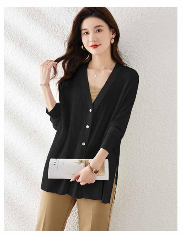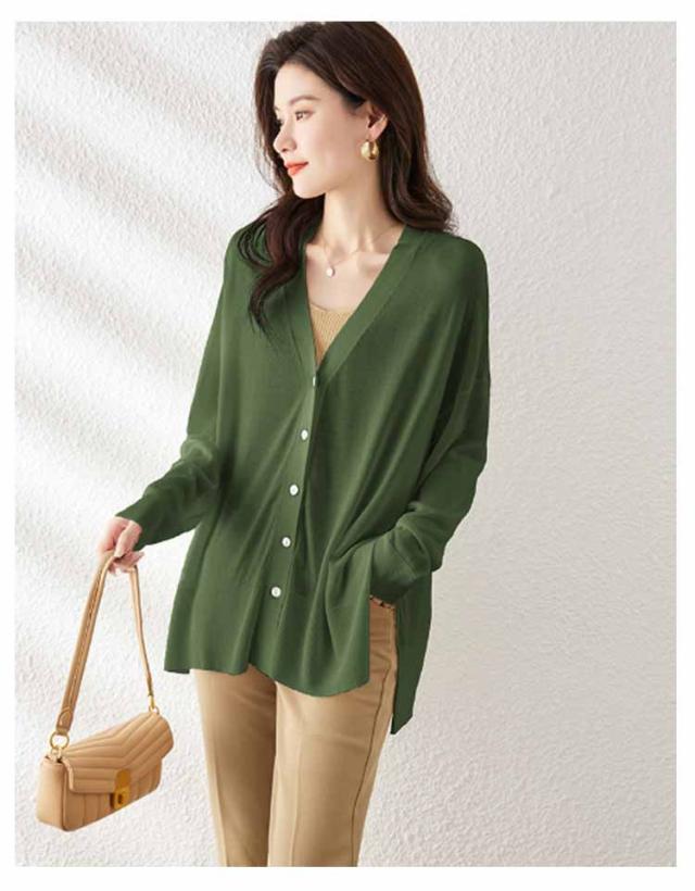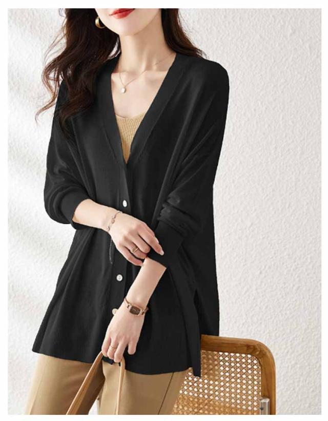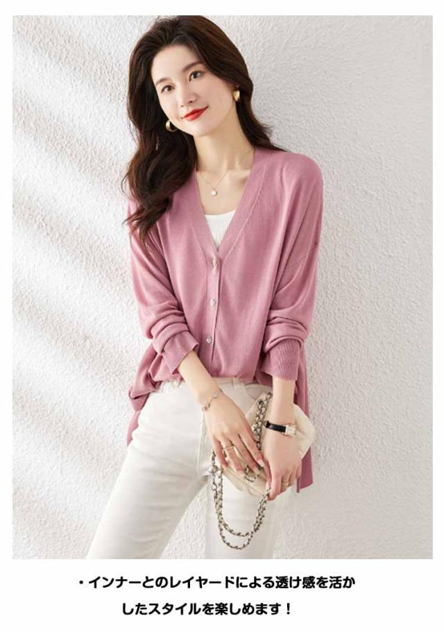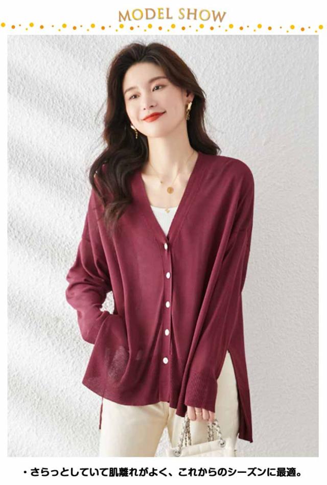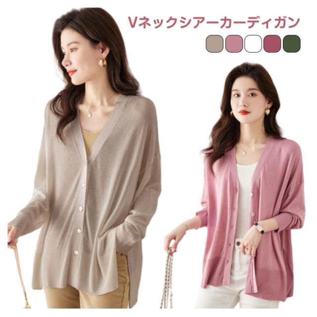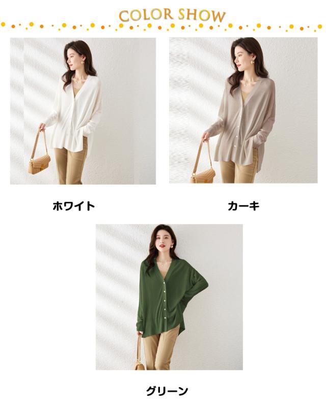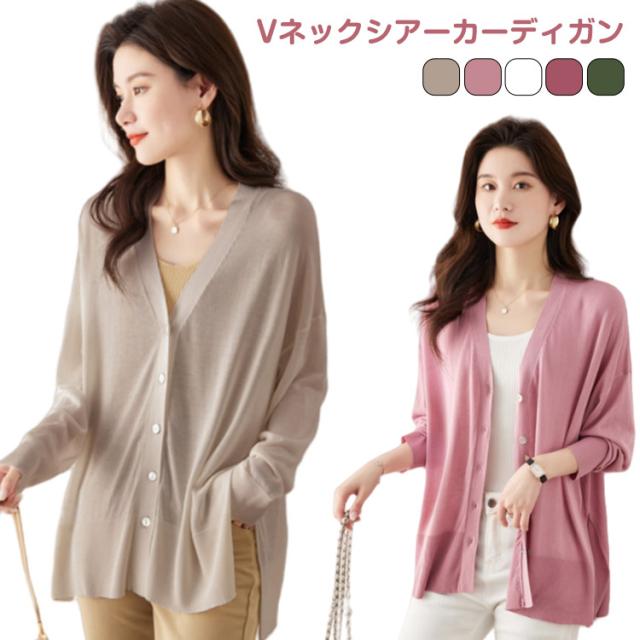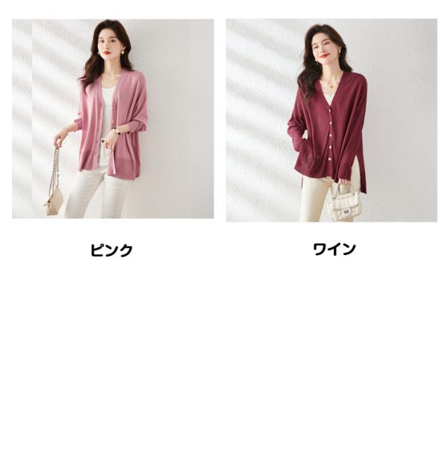シアーニット サマーニット アウター 羽織り 長袖 レディース 涼しい ニットカーディガン UV 冷房対策 カーディガン 薄手 Vネック サイドスリット 前開き フロントボタン きれいめ 上品 フリーサイズ シンプル オフィス