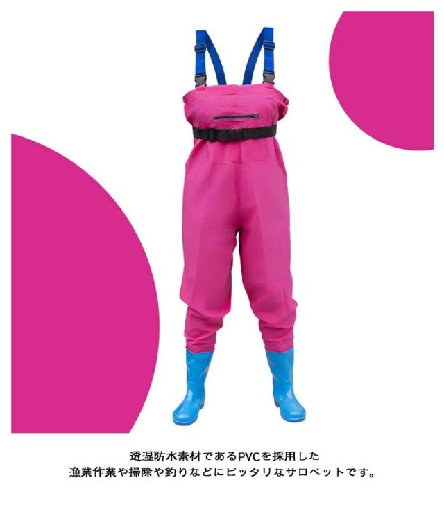 | 海に川に湖に!釣りをするなら必須アイテム!便利なポケット付き。 透湿防水素材であるPVCを採用した漁業作業や掃除や釣りなどにピッタリなサロペットです。 溶着強度に優れた生地は大変丈夫なため、耐寒性・耐摩擦性・耐剥離性を備え、厳しい作業環境に耐えることができます。 PVC加工で防水性・撥水性の高い生地が使われており、水に濡れないのはもちろんですが、水温で奪われる体温の低下スピードを遅くします。 足から胸までを覆う部分に防水性・撥水性の高い生地が使われており、履くだけで体が濡れるのをしっかり防ぐことができます。 ブーツとズボンは縫い合わせるのではなく、一体化でつくられており、水漏れはしません。通気性もよいこの胴長ウェーダーをはき、渓流に入っても体を乾燥的に保ちます。 防滑ソールを採用しており、バス釣りや防波堤には最適です。靴裏は厚底になっており踏みつけ怪我の防止になります。 様々な場所で活躍:川釣り、潮干狩り、水産加工場、魚市場での現場作業着に、また、田植えや草刈りなど農作業や雪掻き。 | |