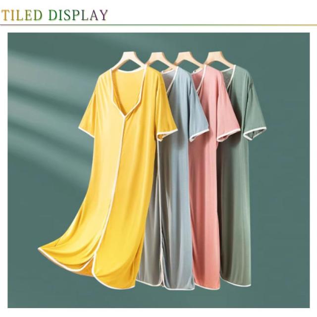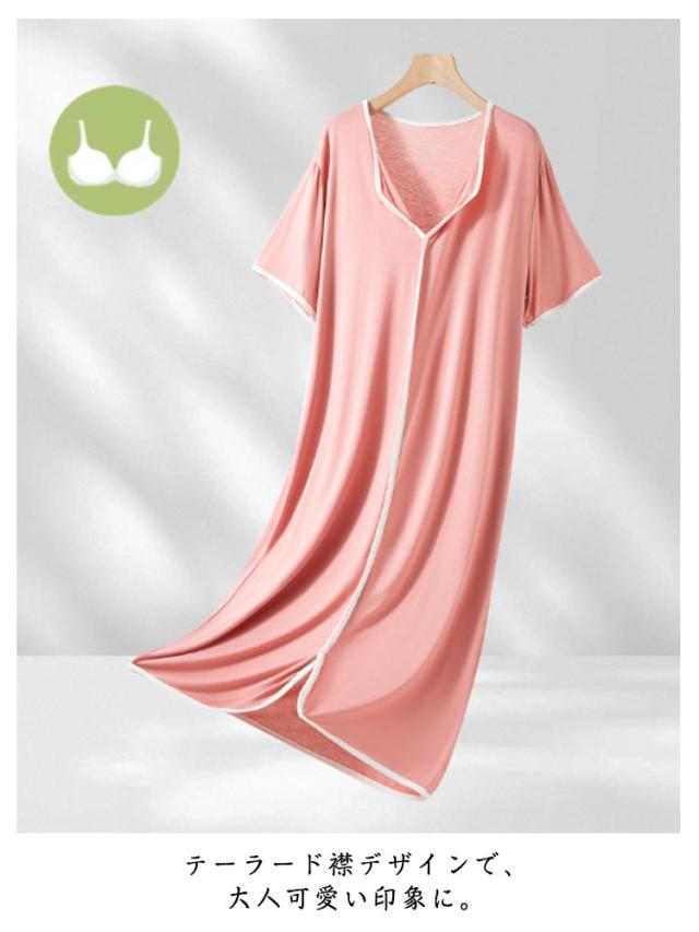 胸パッド付き 胸パッド付き ミモレ丈 Vネック ネグリジェ モダール 半袖 ルームワンピース 無地 テーラード襟 レディース ナイトワンピース ルームウェア 部屋着 ゆったり 婦人用 マタニティ 入院