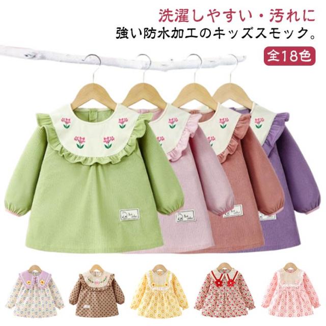 | 【全18色】 洗濯しやすい・汚れに強い防水加工のキッズスモック。 お洋服のような可愛いデザインの長袖スモック、女の子が大好きに間違いなし。 可愛いスカラップ襟に繊細な刺繍が施され、まるでおしゃれなブラウス。 外出時恥ずかしくないおしゃれにスモックを着用できます。 長袖タイプなので、お洋服はいつでも清潔にいられる。 胸部分は防水加工で、お食事など時もお洋服を汚せず安心。 すっぽり被るだけで可愛く汚れ防止◎ お家はもちろん、幼稚園や保育園でも大活躍に間違いなしです。 | |