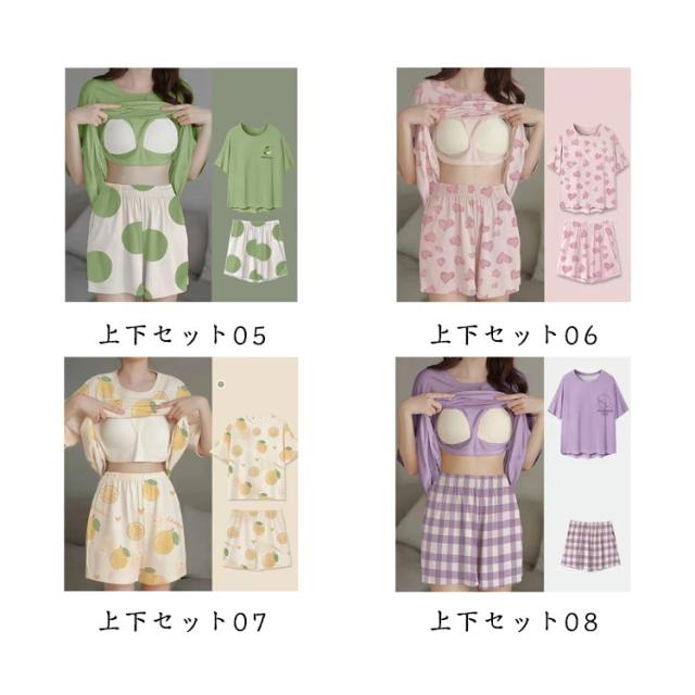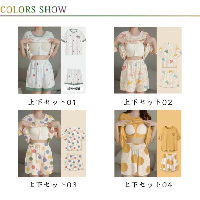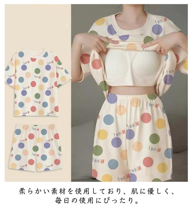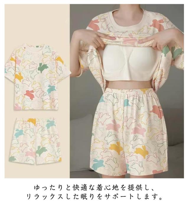 春 上下セット カップ付き 夏 半袖 レディース ルームウェア Tシャツ ショートパンツ パジャマ ルームウェア セットアップ 薄手 かわいい ナイトウェア 部屋着 寝間着 ハーフパンツ