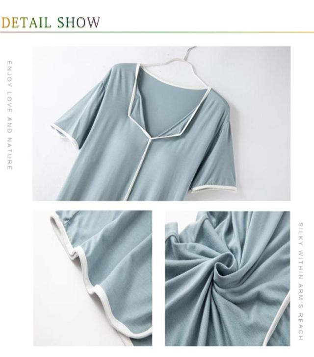 胸パッド付き パジャマ 無地 ルームワンピース 胸パッド付き 半袖 ナイトワンピース ネグリジェ Vネック テーラード襟 ミモレ丈 モダール ルームウェア 部屋着 ゆったり 婦人用 マタニティ 入院