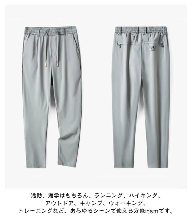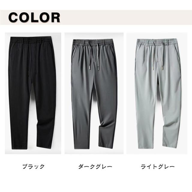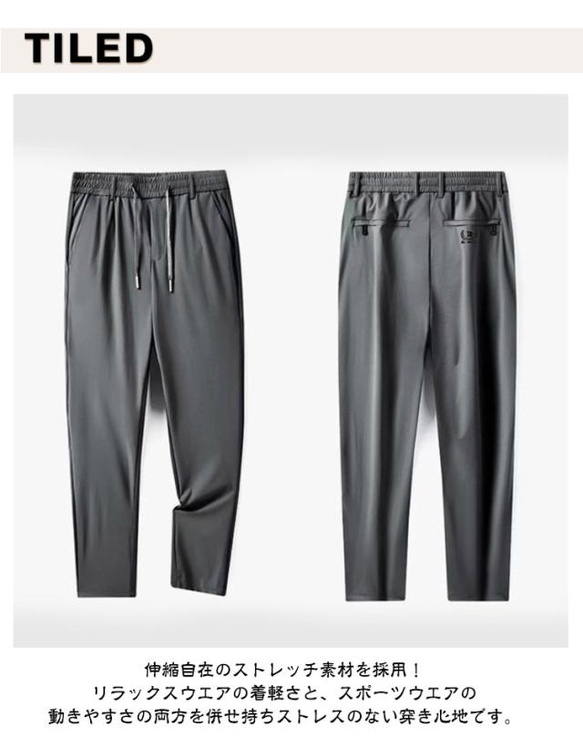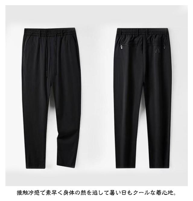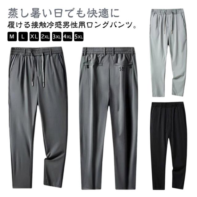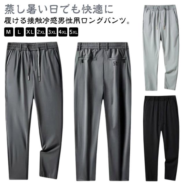 接触冷感 メンズ イージーパンツ ゴルフパンツ アイスシルク 薄手 冷感パンツ パンツ ロングパンツ 吸汗 ウエストゴム ストレッチ 伸縮 長ズボン アイスシルク 涼しい 速乾 UVカット スポーツパンツ 大きいサイズ 春 夏 通気 カジュアル 黒 グレー