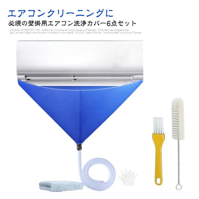 エアコン洗浄カバー 掃除道具 エアコン掃除カバー 壁掛用 6点セット 家庭用 ブラシ付き エアコン 掃除グッズ エアコン掃除用 壁掛用 エアコンクリーニングカバー 排水ホース付き すきま 室内機 洗浄カバー 汚水の飛び散り防止 繰り返し 業務用 掃除用品