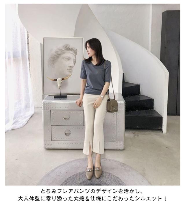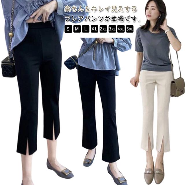 前スリット ハイウエス スリットパンツ ハイウエスト フレアパンツ 涼しい パンツ ボトムス レディース サイドスリット 7分丈 ロングパンツ 9分丈 美脚 フレアパンツ セレモニー 着痩せ 8分丈 楽ちん きれいめ 春夏 通勤 オフィス 大きいサイズ 母の日