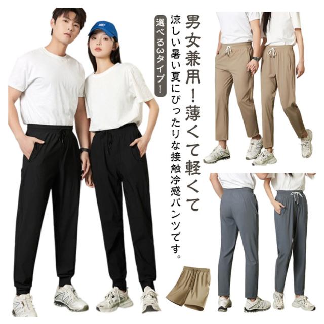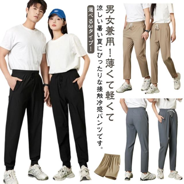 3タイプ ショートパンツ メンズ パンツ 接触冷感 レディース カジュアルパンツ 薄手 ストレートパンツ ジョガーパンツ ストレッチ ウエストゴム アイスシルクパンツ スポーツパンツ 男女兼用 吸水速乾 ひんやり 涼しい 夏