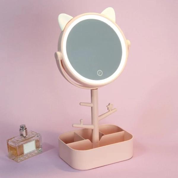 耳 LED 化粧鏡ライトランプ付き収納デスクトップ回転化粧鏡ライト調節可能な調光 USB バニティミラー