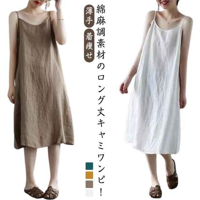 ナチュラル キャミワンピ 無地 インナーワンピース キャミソールワンピース マキシ丈 レディース 薄手 涼しい ノースリーブ 春夏 インナー キャミソールワンピース きれいめ おしゃれ コットン 重ね着 綿 レイヤード ゆったり