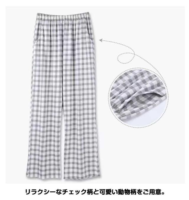 | 誰でも穿きこなしやすい!ストレートシルエット 脚のラインを拾いにくいストンとしたシルエットで程よくゆったりとした穿き心地に。 「全5タイプから選べる」豊富なデザイン リラクシーなチェック柄と可愛い動物柄をご用意。 パジャマとしても部屋着としても使えるので色違いで揃えるのもおすすめ。 「紐で調節もできる」楽ちんウエストゴム ウエストゴムでお腹周りがノンストレスに。 紐付きで調節もOKで紐を緩めるとゆったり窮屈感なく穿ける | |