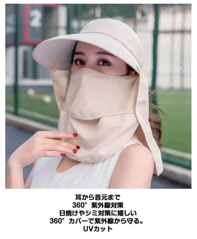 キャップ 日焼け防止 紫外線対策 水分補給 レディース 秋 グッズ 春 夏 帽子 日よけ キャップ 農作業 フェイスカバー UVカット ネックカバー 4way 折りたたみ 収納 ボタン取り外し 顎紐 つば広 無地