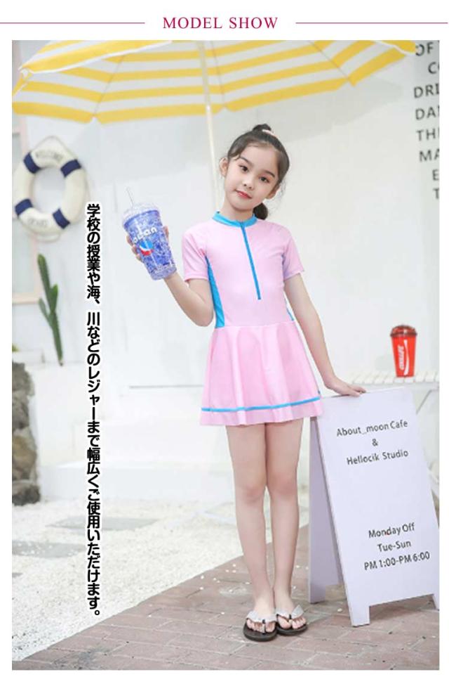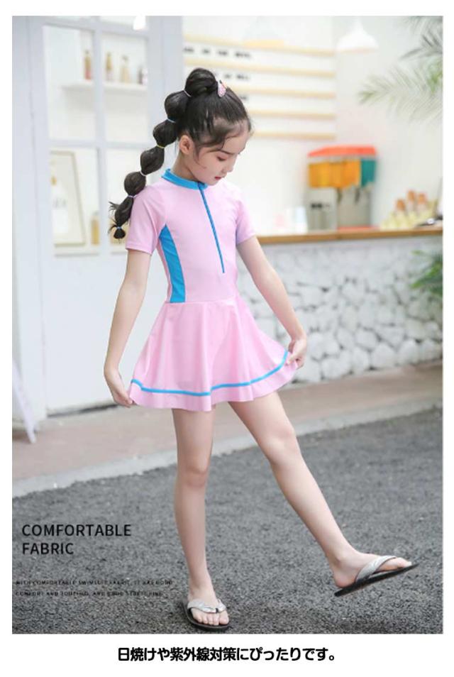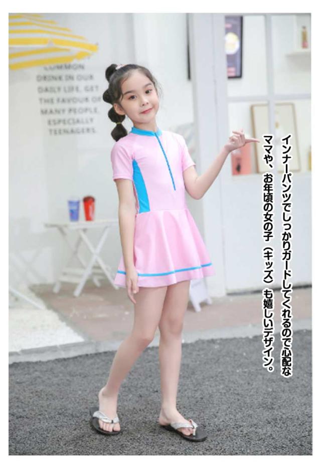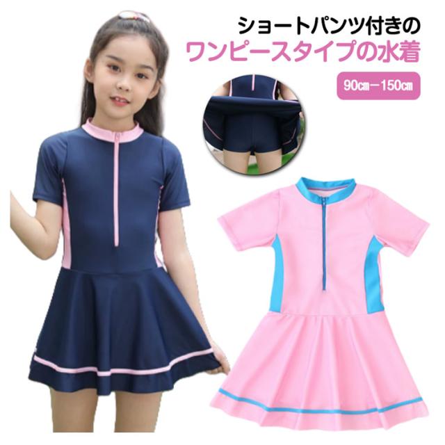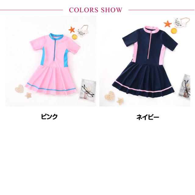 オールインワン 速乾 水着 キッズ キッズ水着 スカート スクール水着 ジュニア ワンピース スイムウェア 配色 幼稚園 子供 中学生 キッズ 女の子 かわいい 水着 子供用 吸水 競泳水着 小学生 スイミング 学校用 90 100 110 120 130 140 150 cm