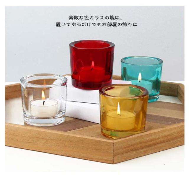 | シンプルながら、カラフルな色がおしゃれなキャンドルホルダー。 素敵な色ガラスの塊は、置いてあるだけでもお部屋の飾りに◎ キャンドルを灯した時にガラスの影がゆらゆらと揺らめく姿が宝石のように美しく映える。 | |