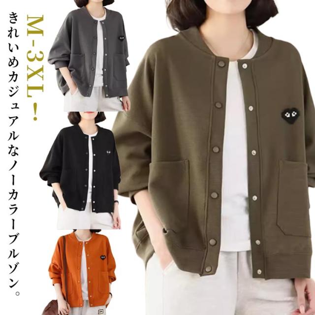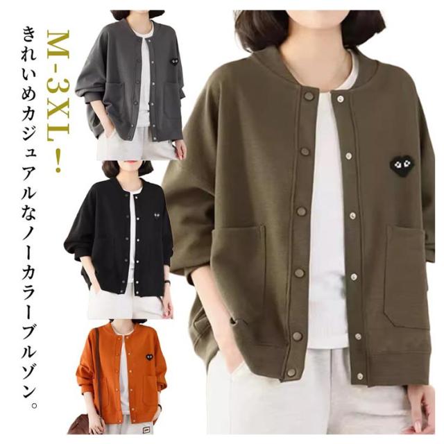 | M-3XL!きれいめカジュアルなノーカラーブルゾン。 ノーカラーデザインですっきりと着こなせて幅広いボトムスと合わせやすい◎ シンプルで着回しやすく、普段使いから通勤時にもおすすめなアウターです。 | |