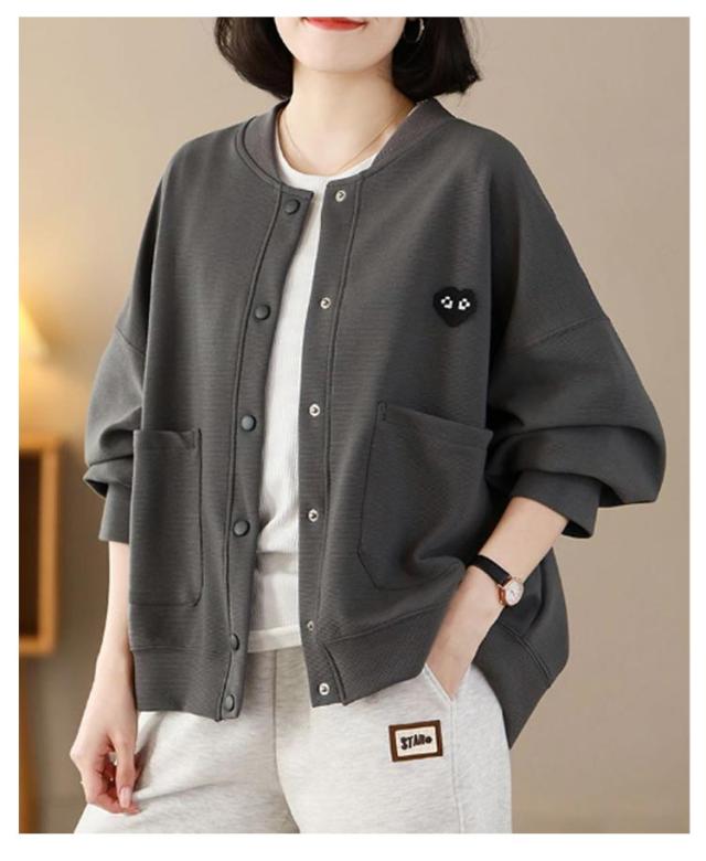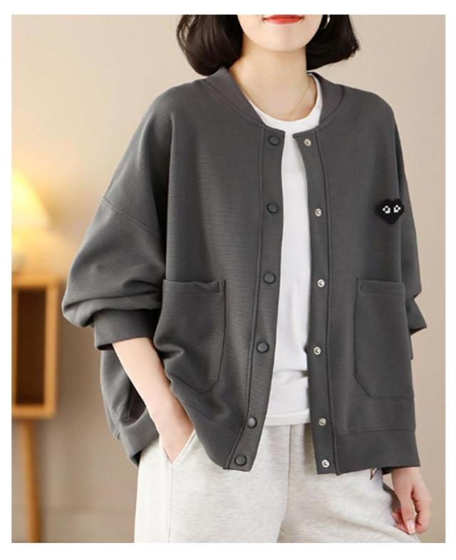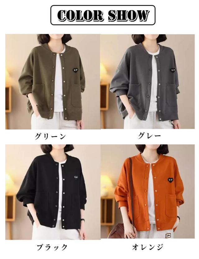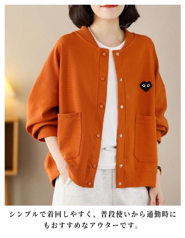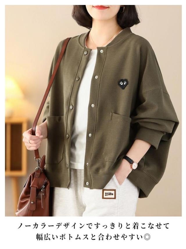スタジャン パーカー 春 秋 シンプル レディース トレーナー トップス 大きいサイズ 上着 ジャケット 羽織り 体型カバー カーディガン ライトコート 大人 かわいい ゆったり ビッグシルエット スタジャン 着痩せ ファスナー ジップアップ
