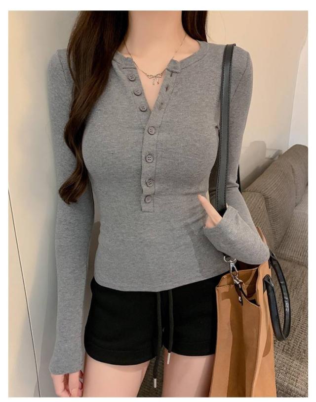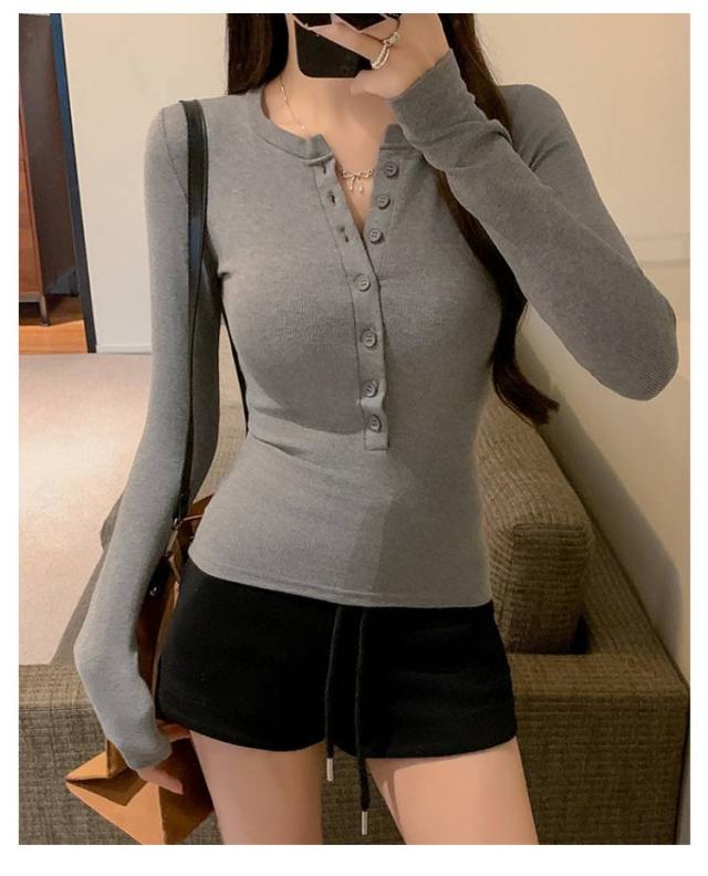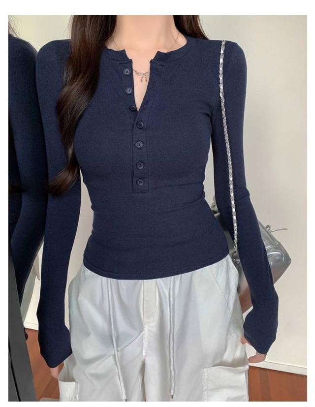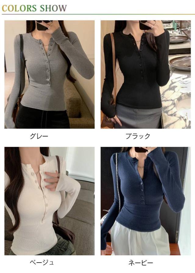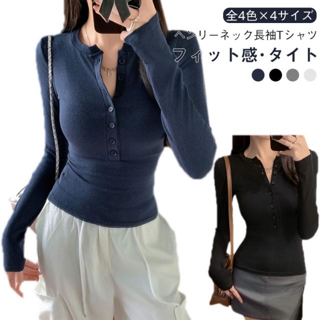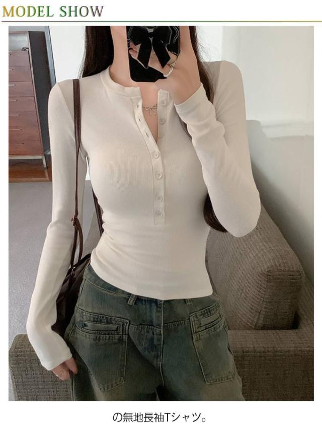 長袖カットソー 薄手 長袖tシャツ ロンT レディース かわいい 春服 ヘンリーネック おしゃれ 無地 シンプル タイト 長袖tシャツ ボタン ストレッチ スリム カジュアル 春 秋 冬