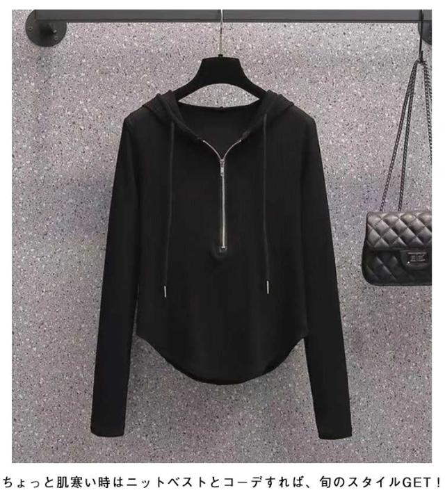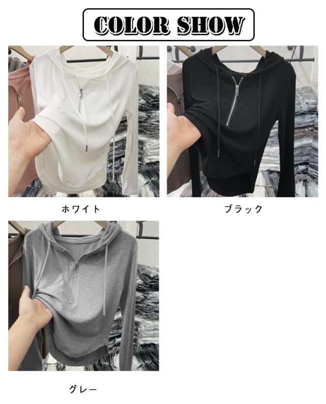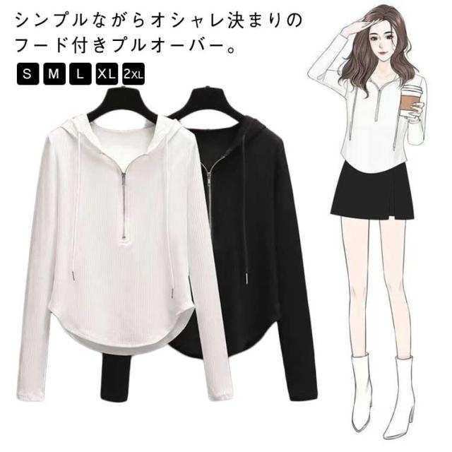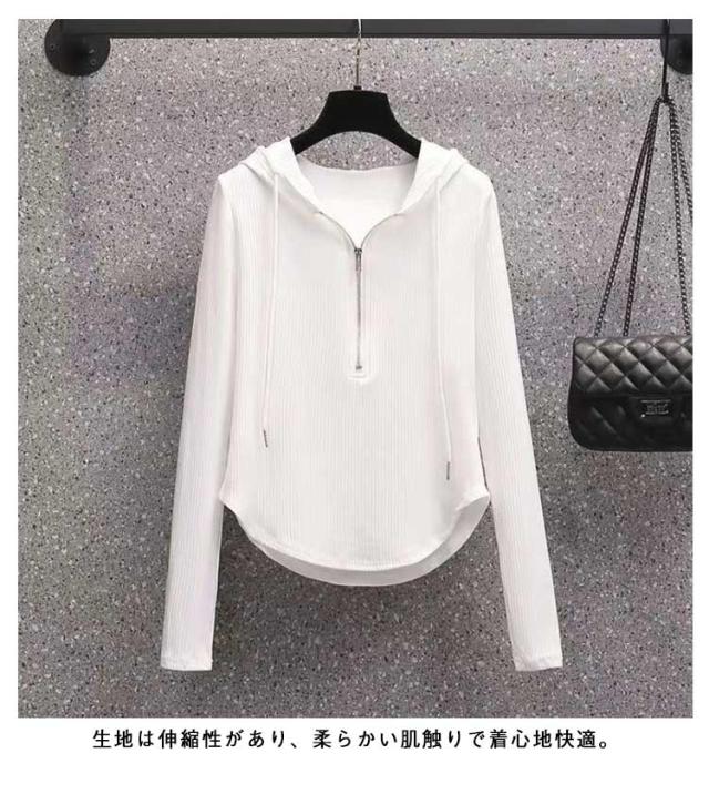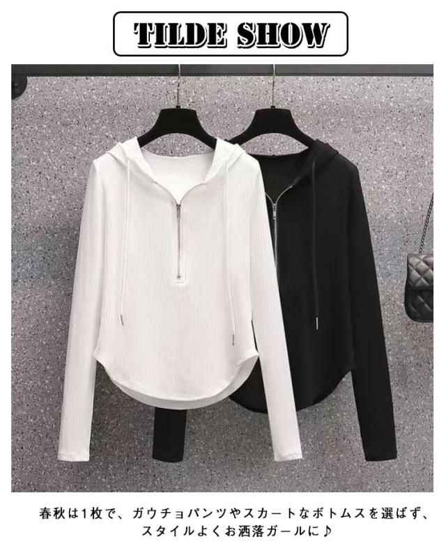 カジュアル 長袖トップス レディース 薄手 パーカー ジップアップ リブ プルオーバートップス 春物 秋服 秋物 個性的 インナー トップス アウター 春 パーカー フード付き パーカー ルームウエア 白 黒 グレー 20代 30代