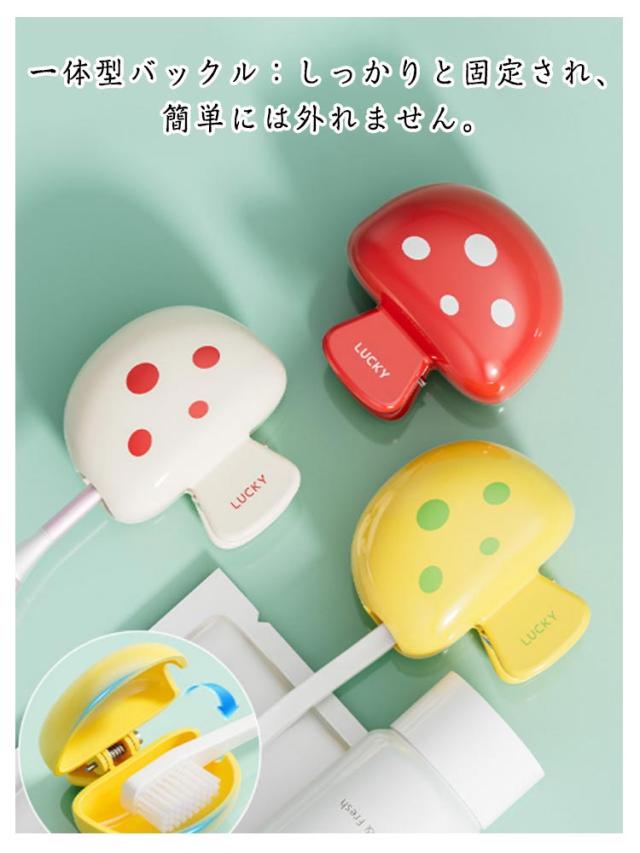 | 可愛くて便利!毎日のお出かけにぴったりな歯ブラシケース! ・ キノコ型デザインで見た目も可愛い! ・ 一体型バックル:しっかりと固定され、簡単には外れません。 ・ 強力バネ式クリップ:歯ブラシをしっかりと挟み込み、安定感抜群。 ・ 衛生的な防塵設計:清潔に保てる構造で、埃や汚れを防ぎます。 ・ 傾斜式スタンドデザイン:底面と接触しないため、清潔さを保ちながら立てて収納可能。 ・コンパクトで携帯便利:旅行や出張にもぴったりな小さなサイズ。 ・広い内部スペース:ほとんどの歯ブラシに対応、使いやすさが広がります。 | |