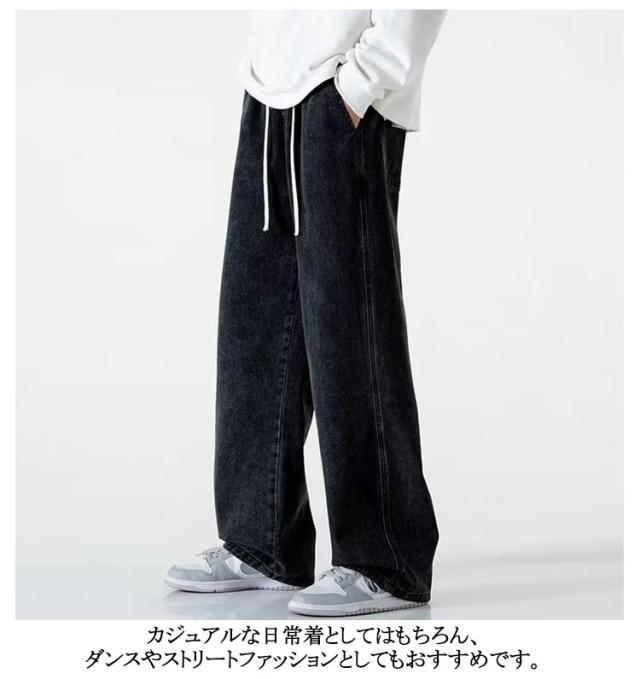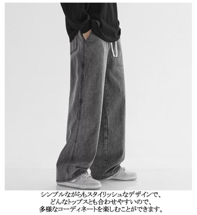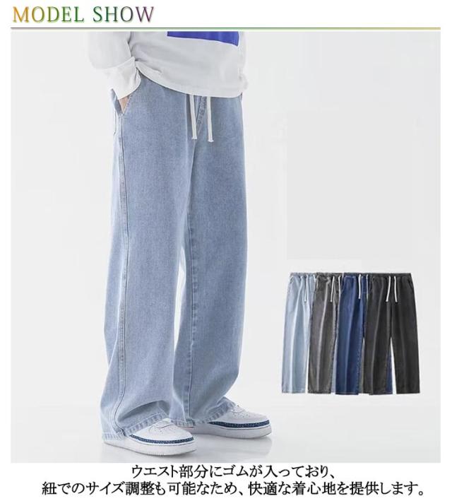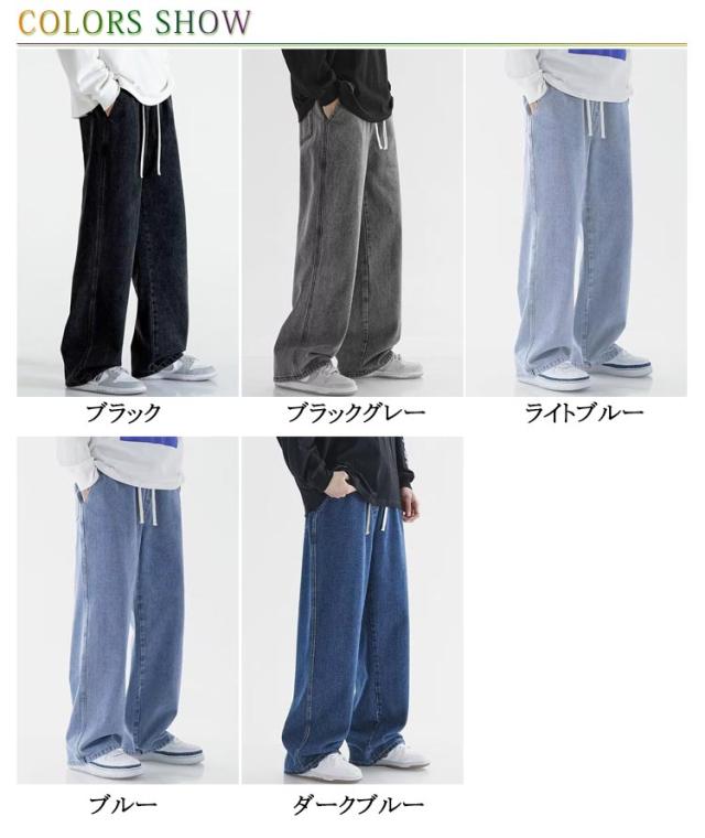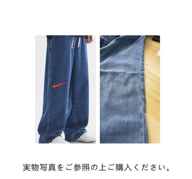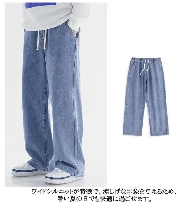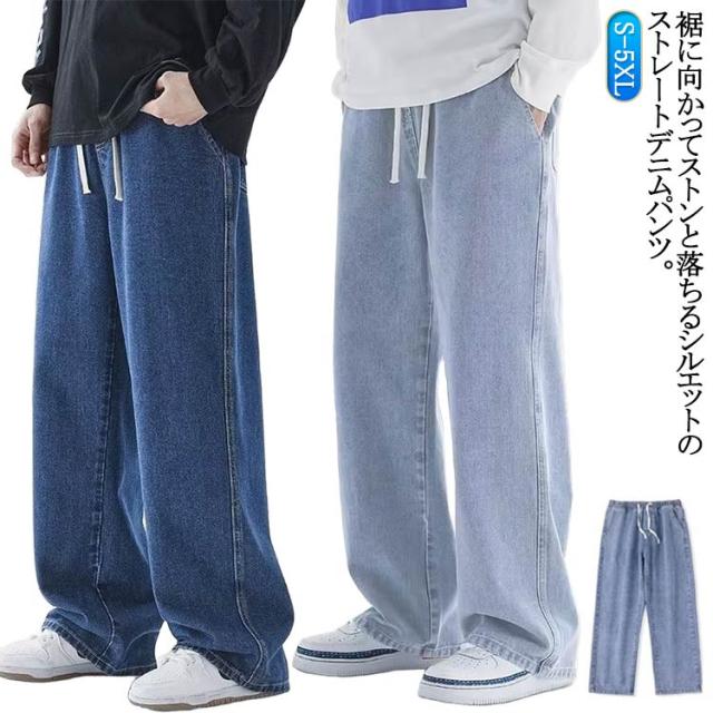 ワイドパンツ デニム デニムパンツ Gパン ゆったり おしゃれ ストレートパンツ メンズファッション ストレート メンズ リラックス ジーパン ロングパンツ ジーンズ メンズ ボトムス カジュアル 無地 ウエストゴム 調整紐 大きいサイズ 春 夏 秋 ワイドパンツ 送料無料